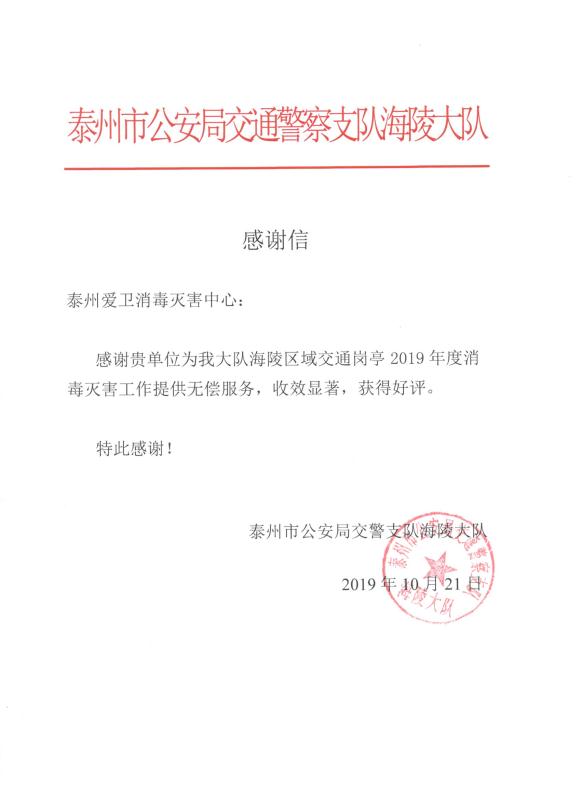 泰州交警海陵大队感谢信