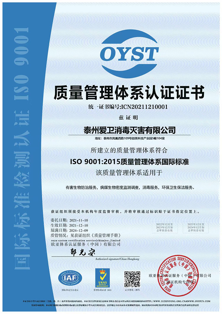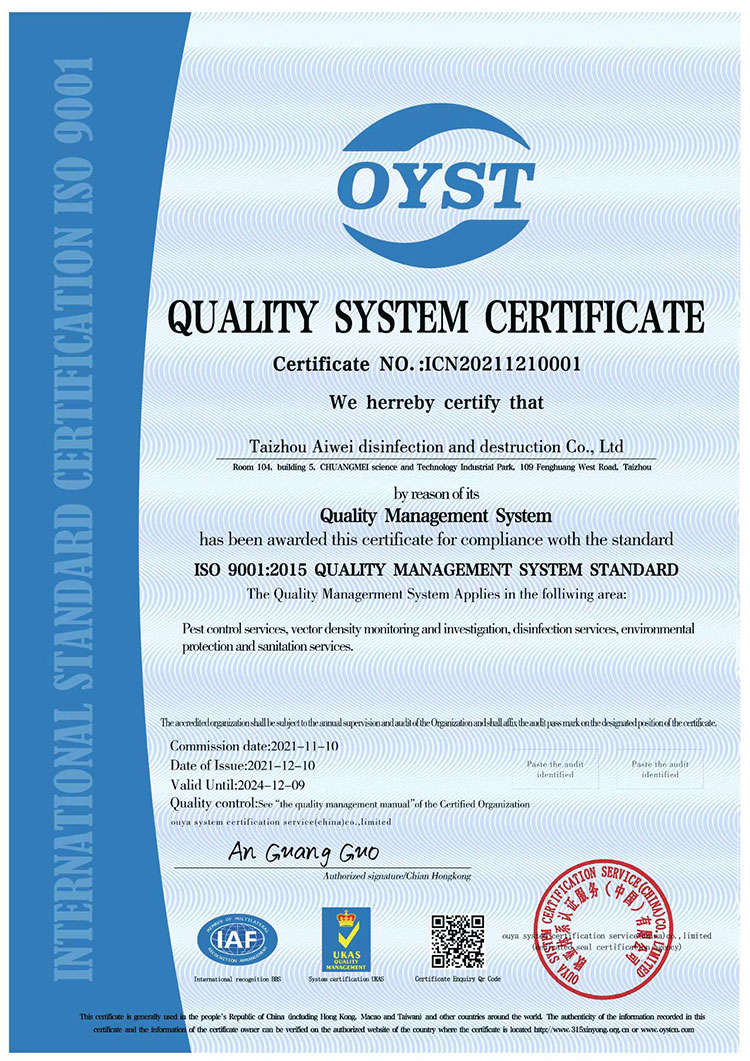 热烈祝贺我司获得国家A级有害生物防制服务资质